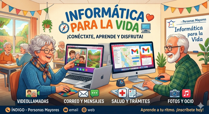 “Informática para la Vida” es un taller diseñado especialmente para personas mayores que desean aprender a utilizar la tecnología de forma segura, accesible y útil para su